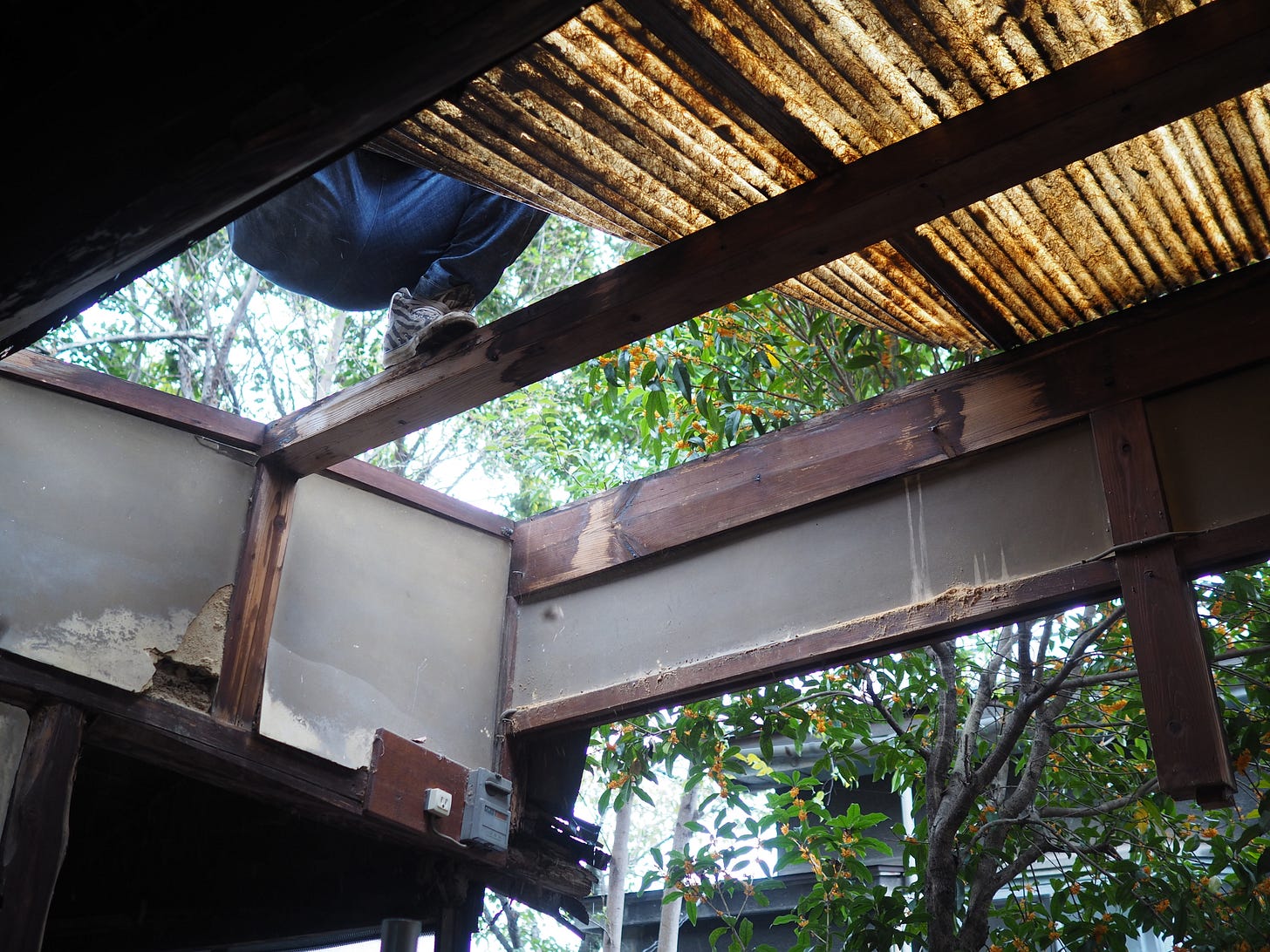 I’ve pulled down the broken roof tiles, shoveled off the dirt and tree bark membrane beneath. I’ve heard decades crunch in rotted wood underfoot and at the end of my crowbar, and splinted the stumps of rafters long since left for dead with freshly cut cedar.