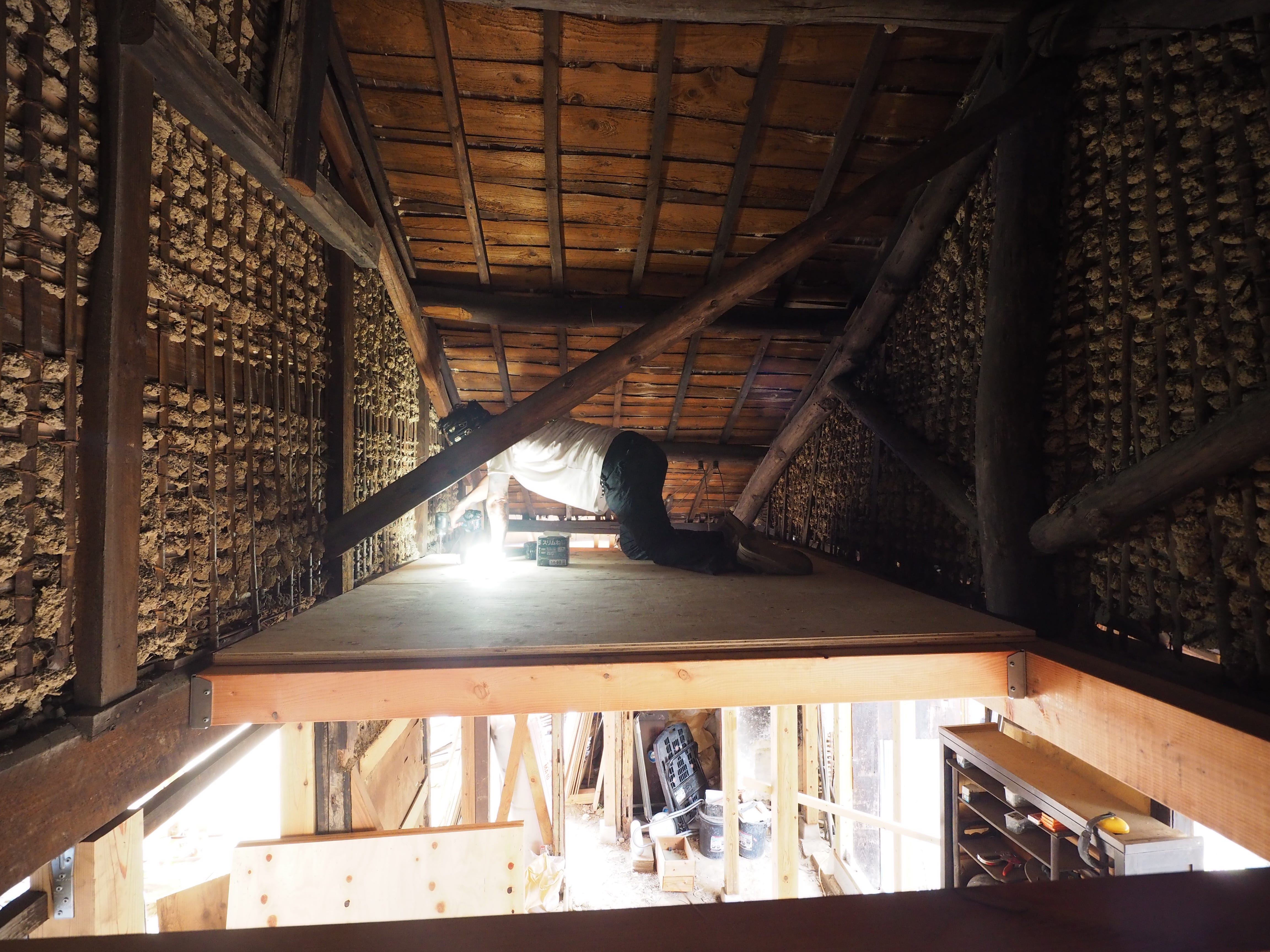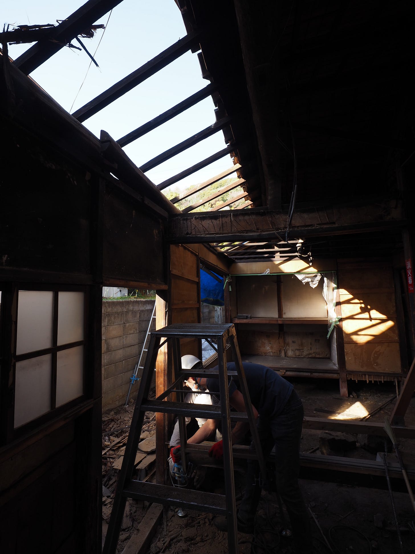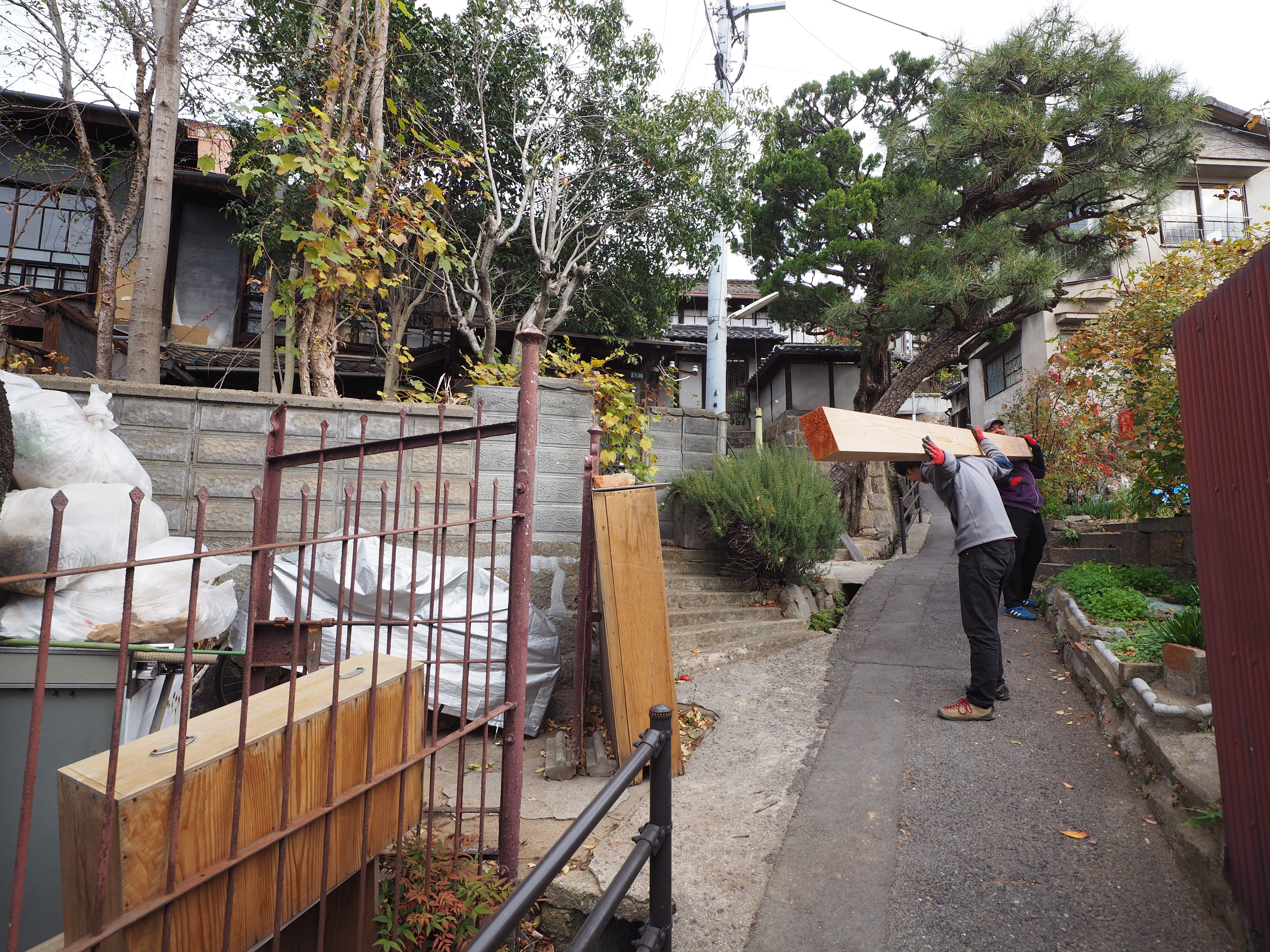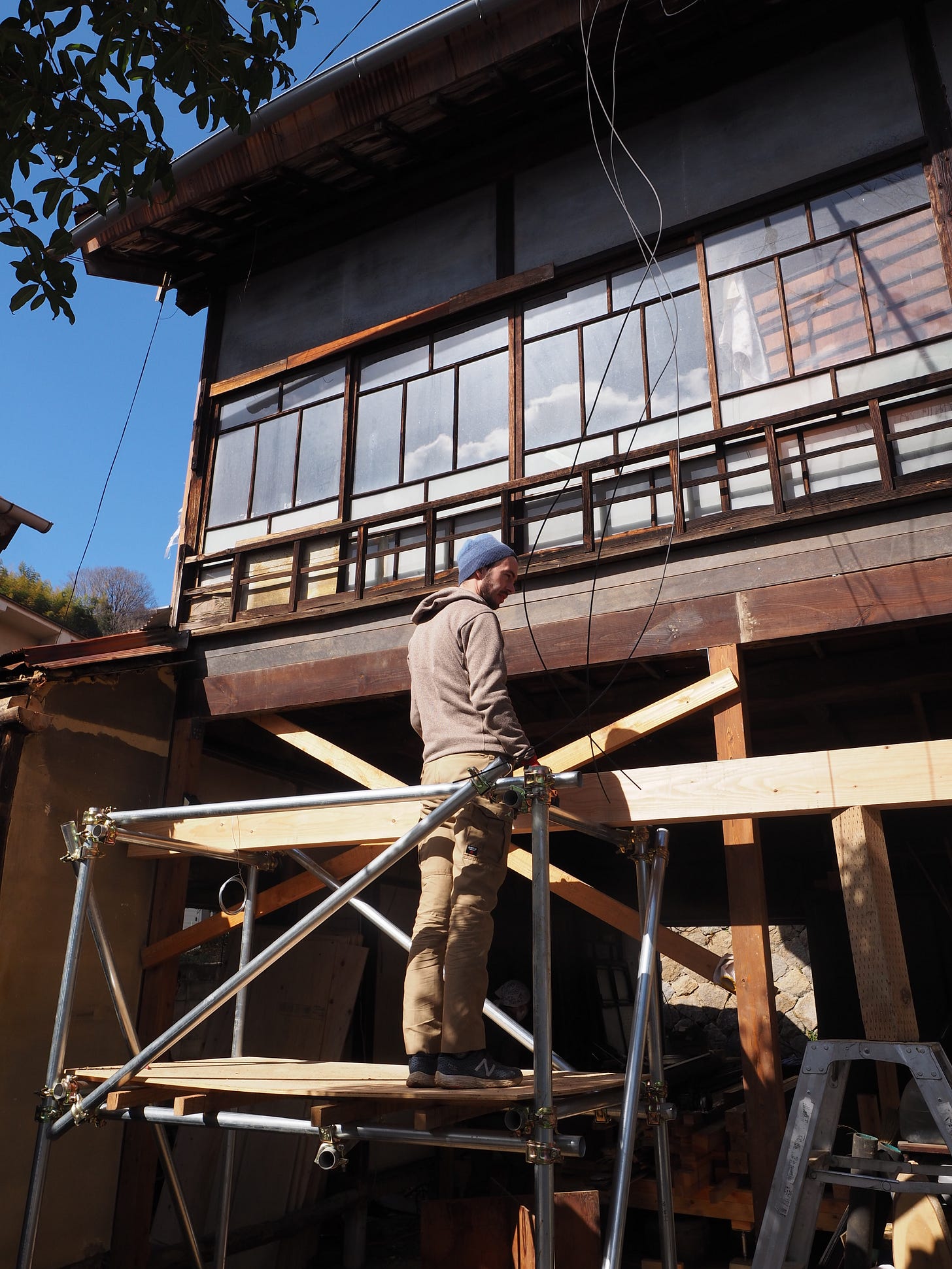 We just wrapped up our 38th week of construction at Labyrinth House. This month also marks five years since we started, which pencils out to about a sixth of the last half-decade of my life spent rebuilding these houses in Onomichi. I’m writing this in the Shinkansen on the way back to Tokyo, and this is the first time in a week I’m looking at a screen and touching a keyboard for more than a few minutes. Instead, I’ve been staring at walls and working with water—mixing plaster and dirt, washing trowels, squeezing sponges, scrubbing columns and floors, mostly ignoring the painful fissures spreading across my fingers.