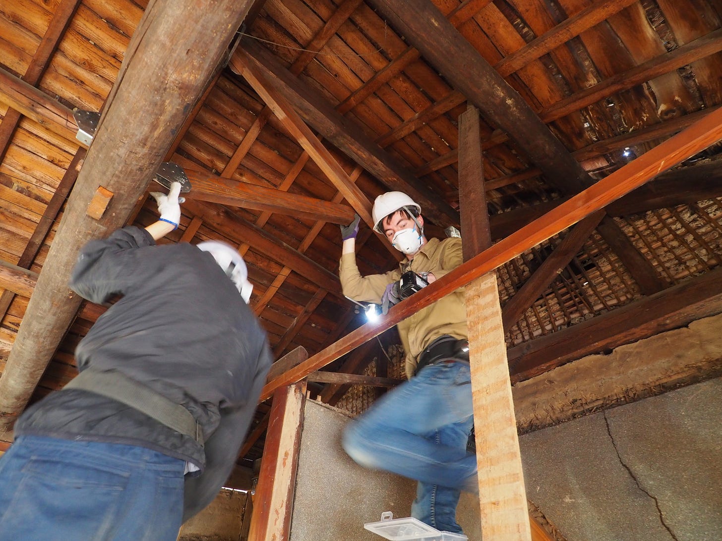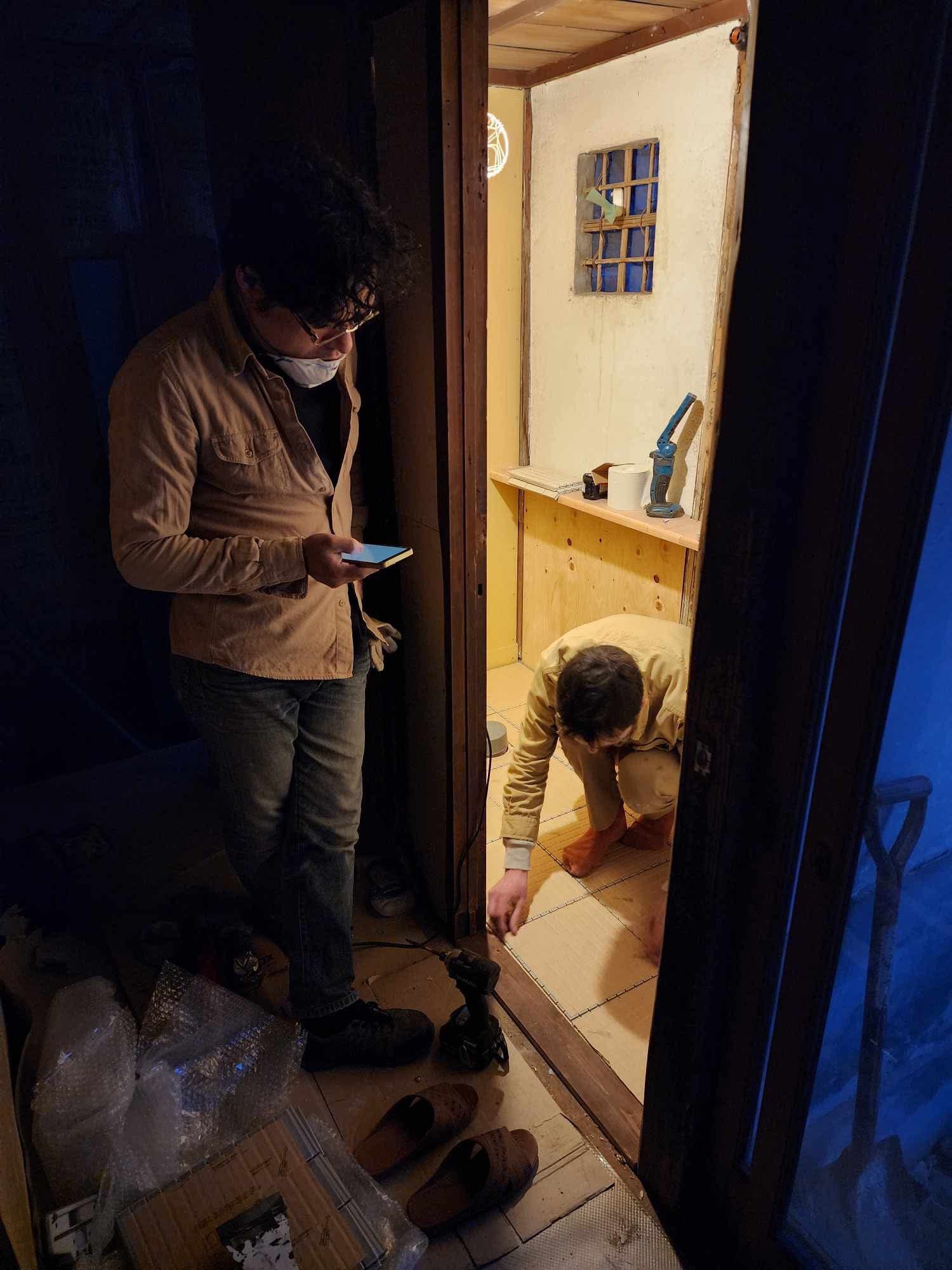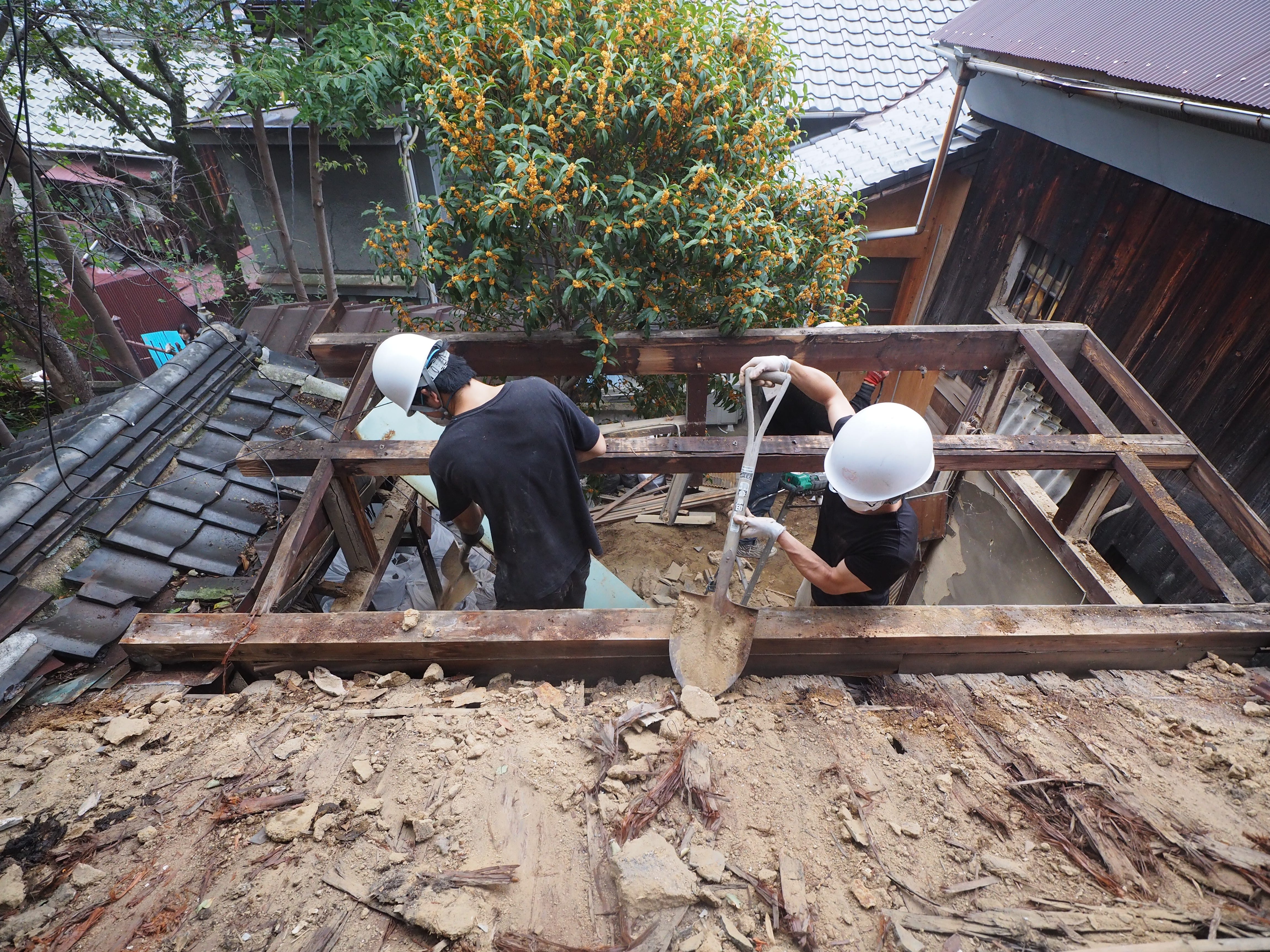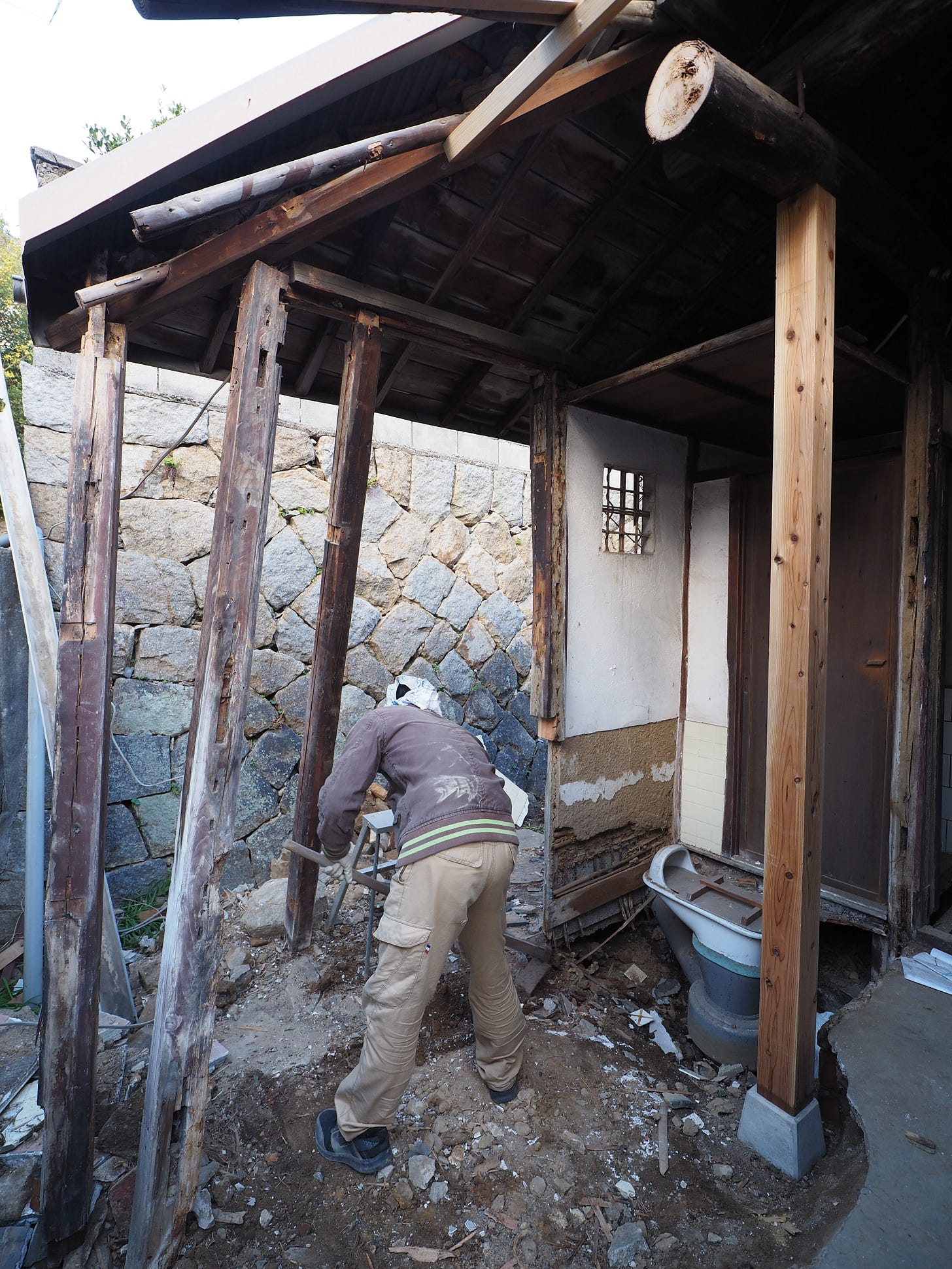 We just wrapped up our 38th week of construction at Labyrinth House. This month also marks five years since we started, which pencils out to about a sixth of the last half-decade of my life spent rebuilding these houses in Onomichi. I’m writing this in the Shinkansen on the way back to Tokyo, and this is the first time in a week I’m looking at a screen and touching a keyboard for more than a few minutes. Instead, I’ve been staring at walls and working with water—mixing plaster and dirt, washing trowels, squeezing sponges, scrubbing columns and floors, mostly ignoring the painful fissures spreading across my fingers.