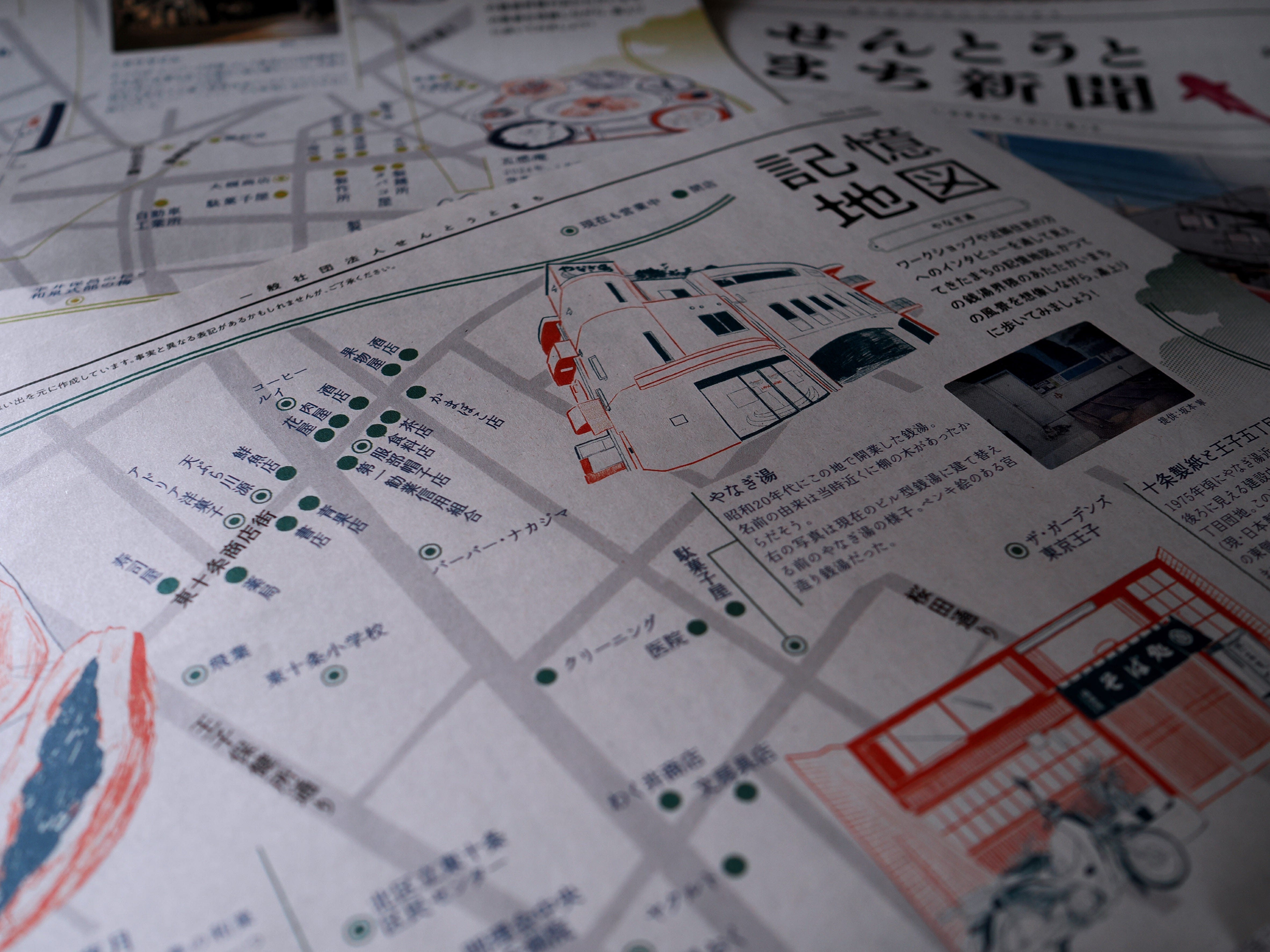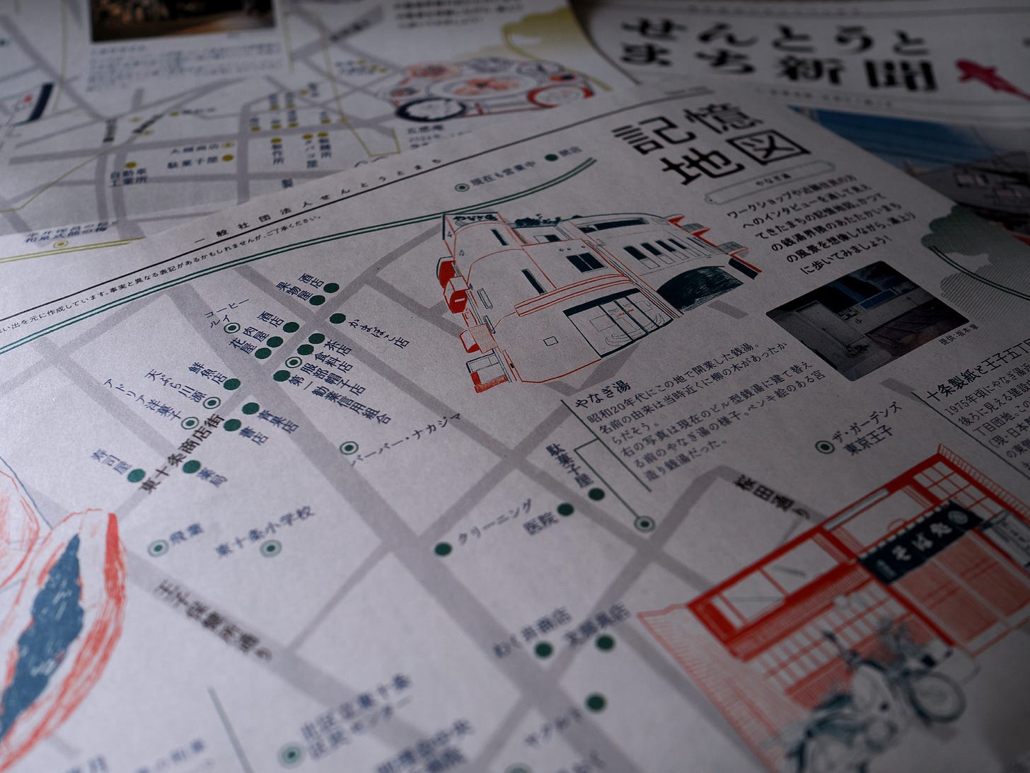 For the past three years, my non-profit organization Sento & Neighborhood has been recording and mapping memories of mostly vanished local worlds that once filled neighborhoods around public baths. In our workshops, small businesses are the vocabulary by which older residents describe their neighborhoods and the human webs that connected them. To walk down mostly shuttered streets, once filled with dense, coherent networks of green grocers, butchers, tofu and soba shops, is to weigh in their absence the profound erosion of the city’s social fabric. This erosion is also evident in the way most Tokyo residents today talk about their neighborhoods—not as places with human definition but merely as coordinates in space—15 minutes to Marunouchi, convenient to shopping, located in an area with rising real estate value, et cetera.